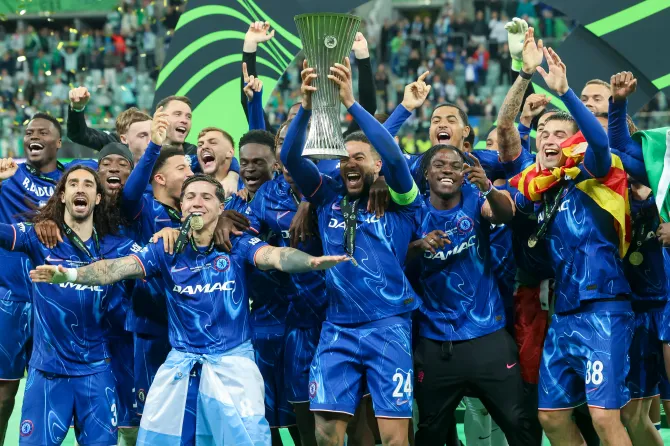حقق نادي تشيلسي الإنجليزي لقب دوري المؤتمر الأوروبي بعد فوزه الساحق على ريال بيتيس الإسباني بنتيجة 4-1، في نهائي احتضنته بولندا، حيث كان النجم الإنجليزي كول بالمر هو كلمة السر في عودة “البلوز” بعد التأخر في النتيجة.